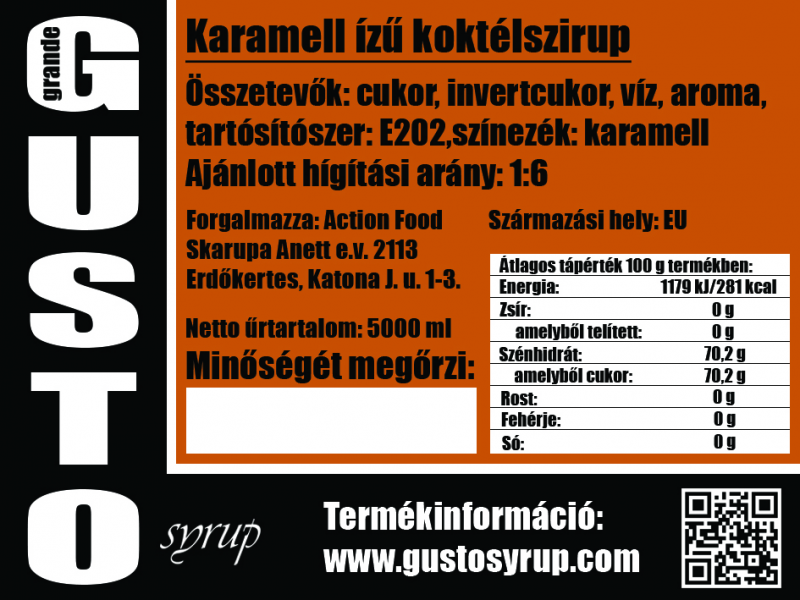 Karamell szirup 5 l