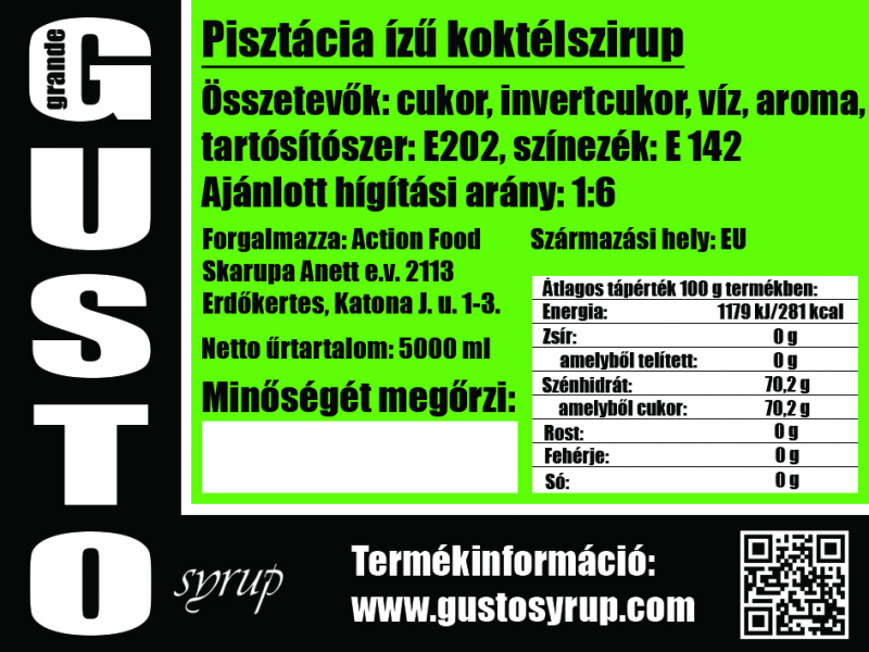 Pisztácia szirup 5 l